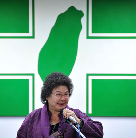 民进党主席蔡英文为“大选”败选负责29日辞去主席,代理主席陈菊(图)在交接典礼后致词,呼吁党内团结。 图片来源:“中央社”