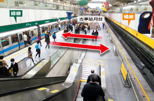 9月分流后的古亭站,需要换线的乘客不必上下月台,只要换搭对面的列车即可。