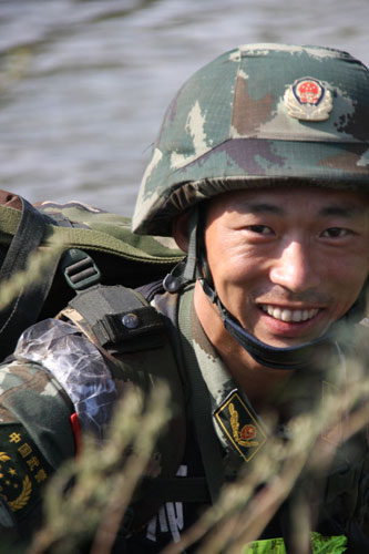 训练中的孙政斌。 图片来源:人民武警报