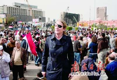科尔文的一位朋友22日在美国《新闻周刊》网站上撰文称:“她是我见过的较勇敢的人”。图为去年2月4日,玛丽·科尔文在埃及开罗塔里尔广场。CFP供图