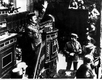 现场只有两个人纹丝不动,一个是前首相苏亚雷兹,另一个是共产党总书记卡利约。议员中的梅利亚多将军要求政变者退后,却被打翻在地。苏亚雷兹跳起来冲上前去,试图保护将军,同样被当场“放倒”。在场的一位摄像师几乎全程记录了较初半小时的情况。