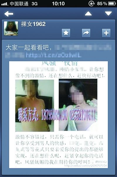 女孩陷微博“艳照门” 疑遭前男友报复(图)