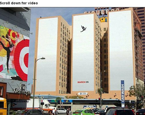 纽约巨幅广告主角高空坠落似911场景被批(图)