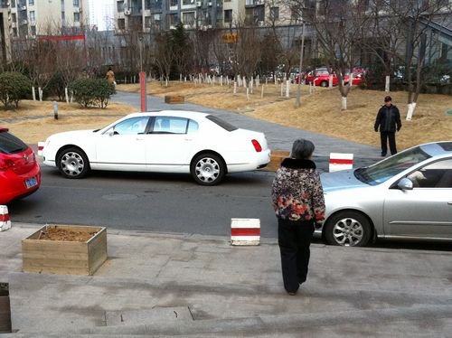 现场有一些车技较好的司机虽然费点劲,但还是能顺利通过;而一些对技术没自信的车主则选择绕行500米,从小区另一侧包抄。现场一辆面包车司机反复权衡后放弃了闯关的打算,想必是感觉自身的保险金额分量不足。而一些业主也表示,听说了南京劳斯莱斯事件,以后对待豪车要理性一些。