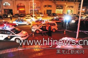 21时许,在南岗区民益街60号一家临街宾馆的台阶与人行道接合处,一男一女躺在血泊中,年轻女子衣不遮体,年轻男子颈部有明显外伤,警方已在周围设置了警戒线,宾馆上部居民楼5楼的房间窗户还半开着。
