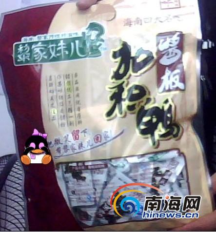 当天下午,南海网记者从湖南雨露商贸有限公司销售部工作人员处了解到,该公司驻海南办事处负责人的联系电话。这位负责人说,“黎家妹儿酱板” 加积鸭确实产自该厂,不过如今在海南的市场只有三亚销售,“在三亚的很多特产店里都有销售。”